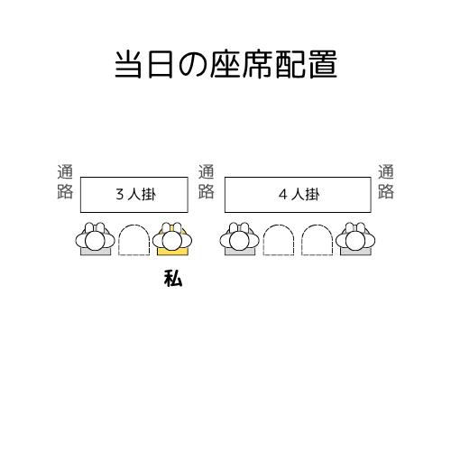 3人掛け右席の受験生(私)・・・左方向に1.5